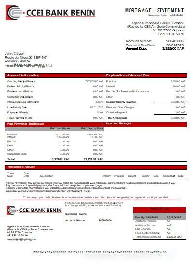 Equatorial Guinea CCEI Bank Benin bank mortgage statement scr download template file
