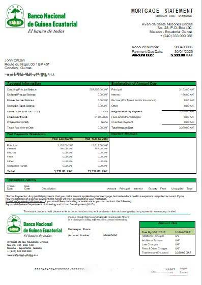 Equatorial Guinea National Bank bank mortgage statement scr download template file