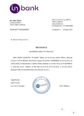 Estonia Inbank reference download template file