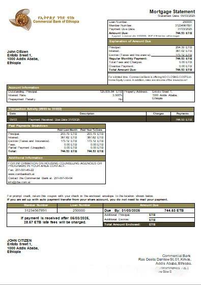 Ethiopia Commercial Bank mortgage statement scr download template file