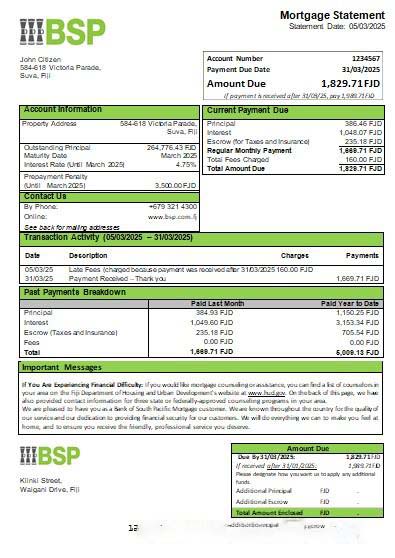 Fiji Bank of South Pacific bank mortgage statement scr download template file