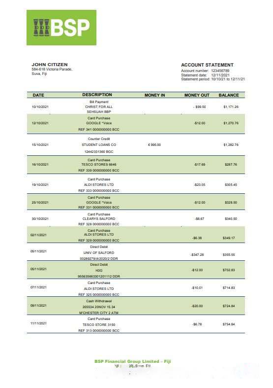 Fiji Bank of South Pacific bank statement template, Word and PDF format download template file