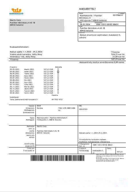 Finland Nuorisosäätiö Youth Foundation business bill template in Word formats1 download template file