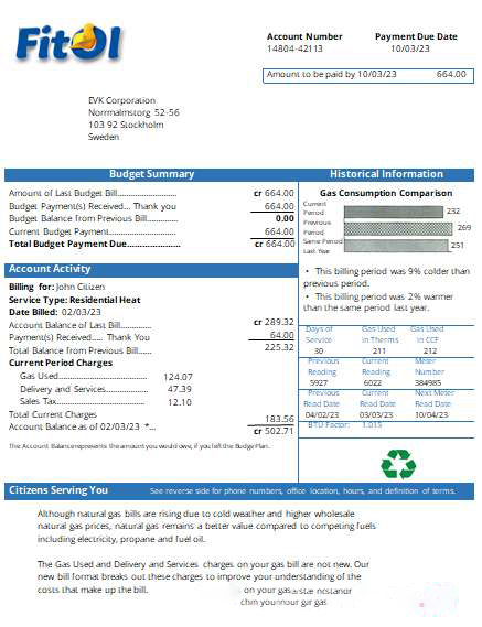 Fitol gas utility business bill, SCR download template file