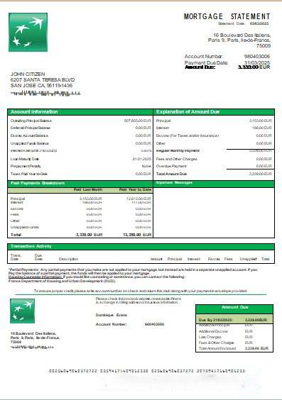 Be the first to review “France BNP bank mortgage statement scr download template file”