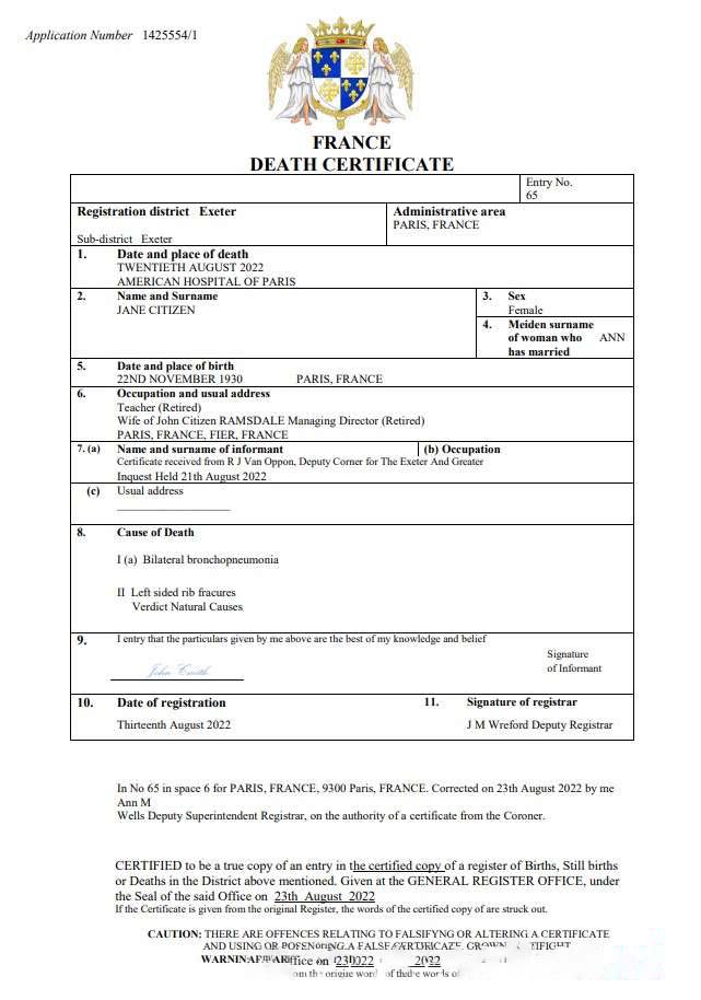 France vital record death certificate Word and PDF template download template file