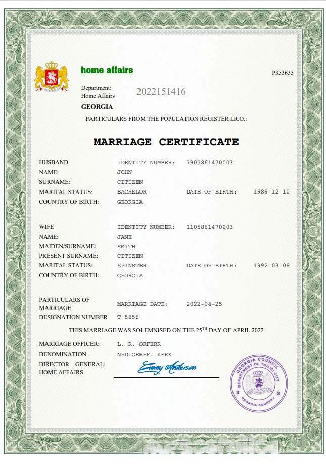Georgia marriage certificate Word and PDF template download template file