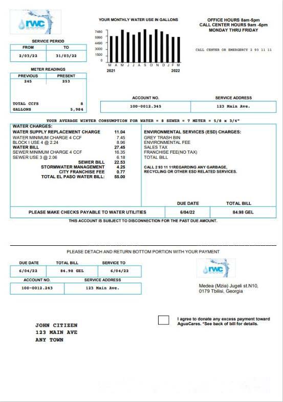 Georgia RWC water bill download template file