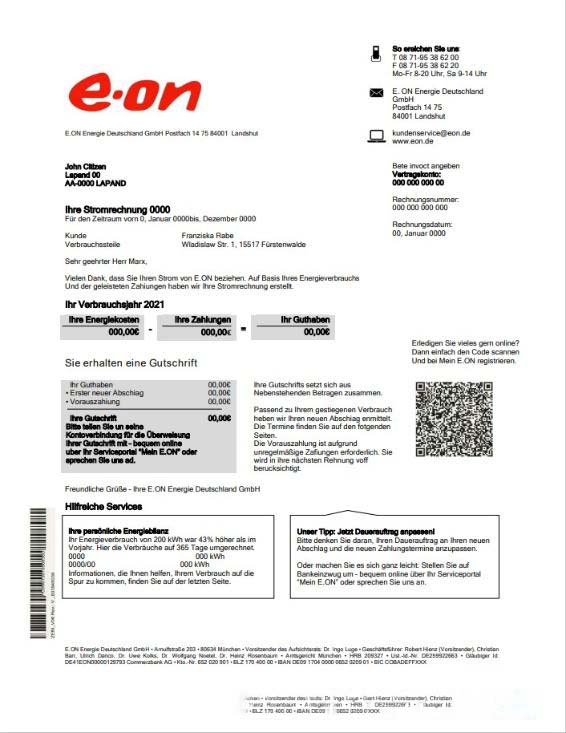 Be the first to review “Germany E.ON Energie electricity utility bill download template file”