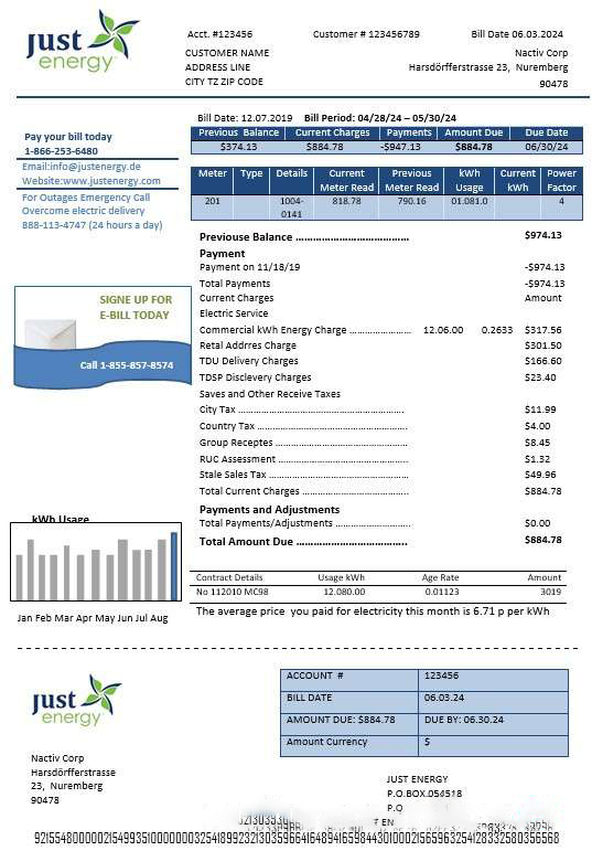 Germany Just Energy business utility bill template in Word and PDF formats download template file