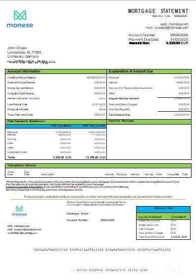 Germany Monese bank mortgage statement scr download template file