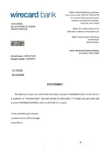 Germany Wirecard closure reference download template file