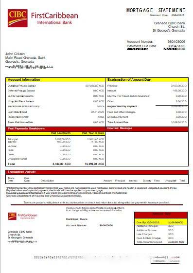 Grenada CBIC bank bank mortgage statement scr download template file