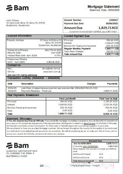 Guatemala Agromercantil bank mortgage statement scr download template file