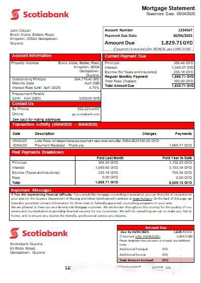 Guyana Bank of Nova Scotia bank mortgage statement scr download template file