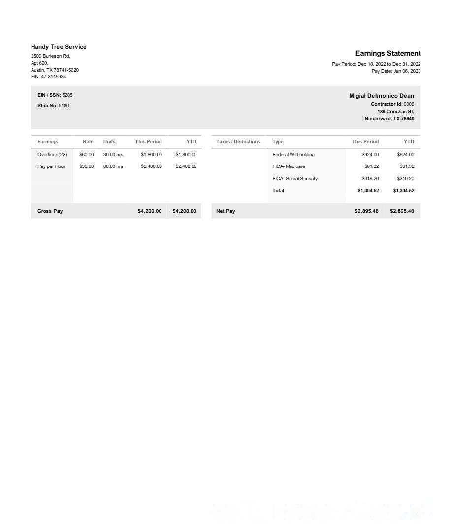 H E B Distribution Center earning statement template in Word and PDF formats.pdf, 2 download template file