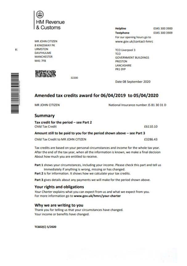 HM Revenue & Customs tax credits download template file