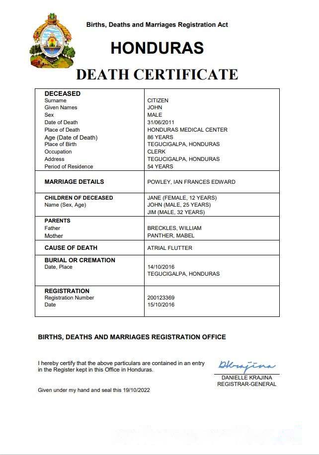 Be the first to review “Honduras vital record death certificate Word and PDF template download template file”