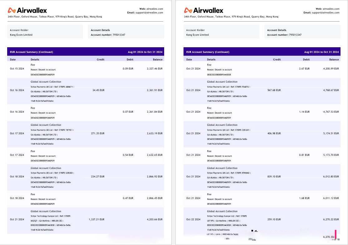 Hong Kong Airwallex Limited account statement, 18 pages 7 download template file