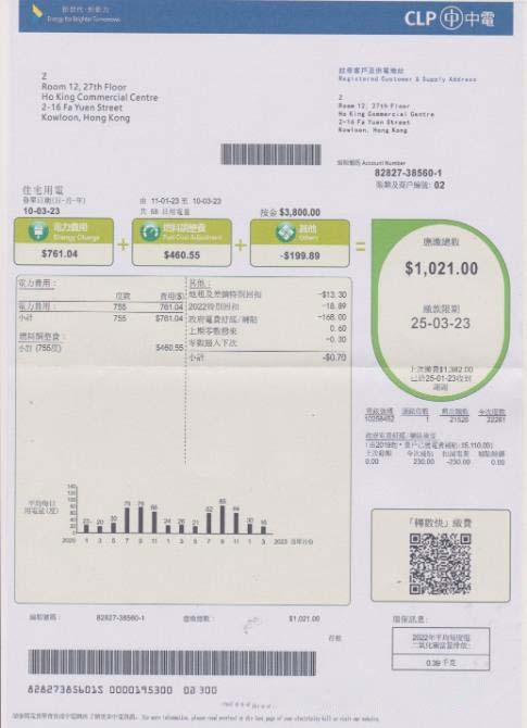 Hong Kong CLP power utility bill in PSD format download template file