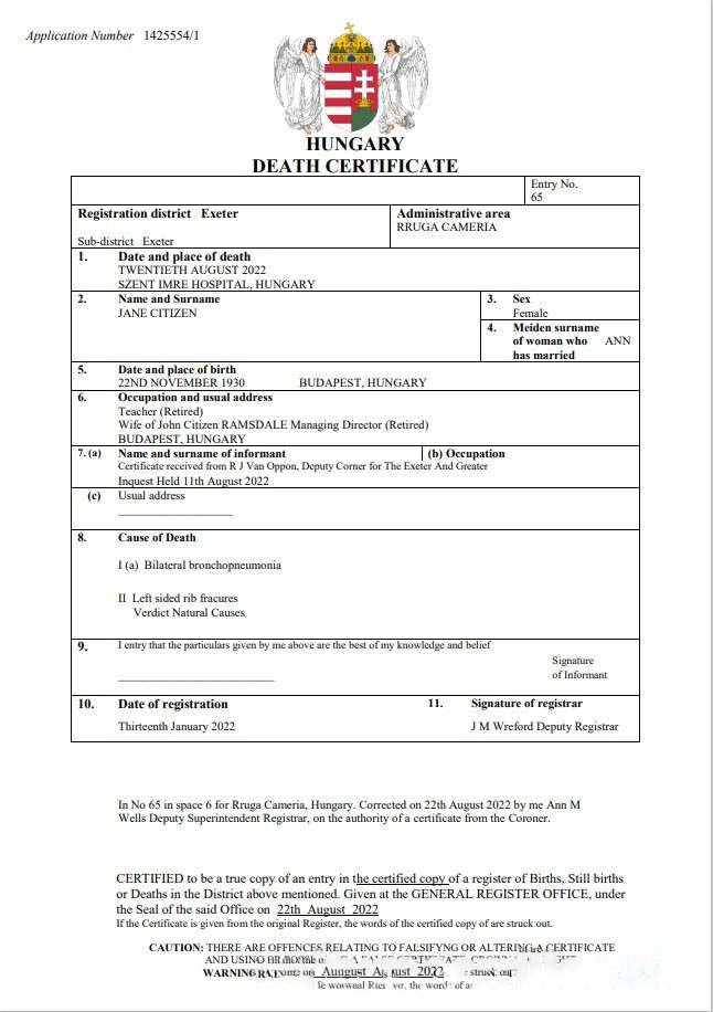 Be the first to review “Hungary vital record death certificate Word and PDF templat download template file”