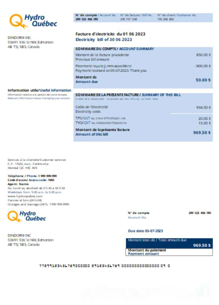 Be the first to review “Hydro Québec utility business bill, SCR download template file”