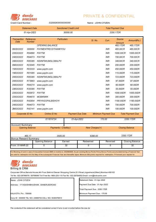 Be the first to review “India Bank of Baroda BOBCARDS bank statement download template file”