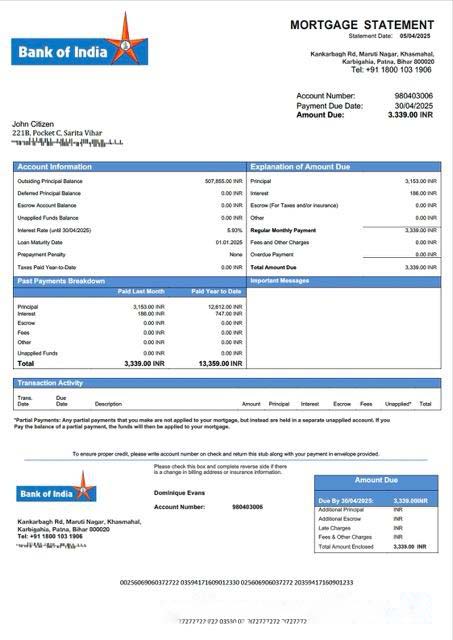 Be the first to review “India Bank of India mortgage statement Word and PDF template download template file”