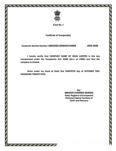 India certificate of incorporation Word and PDF template, version 5 download template file