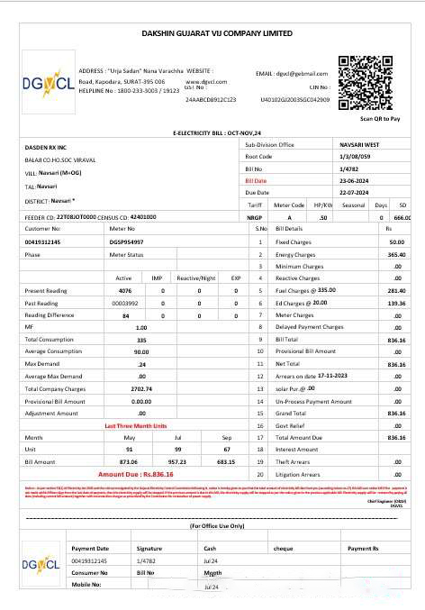 INDIA DGVCL business utility bill Word and PDF template download template file