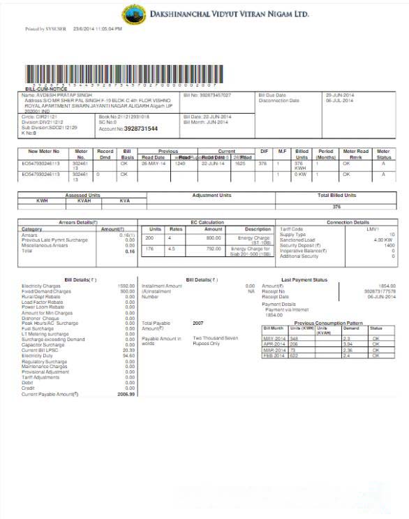 Be the first to review “INDIA DVVNL utility bill Word and PDF template download template file”