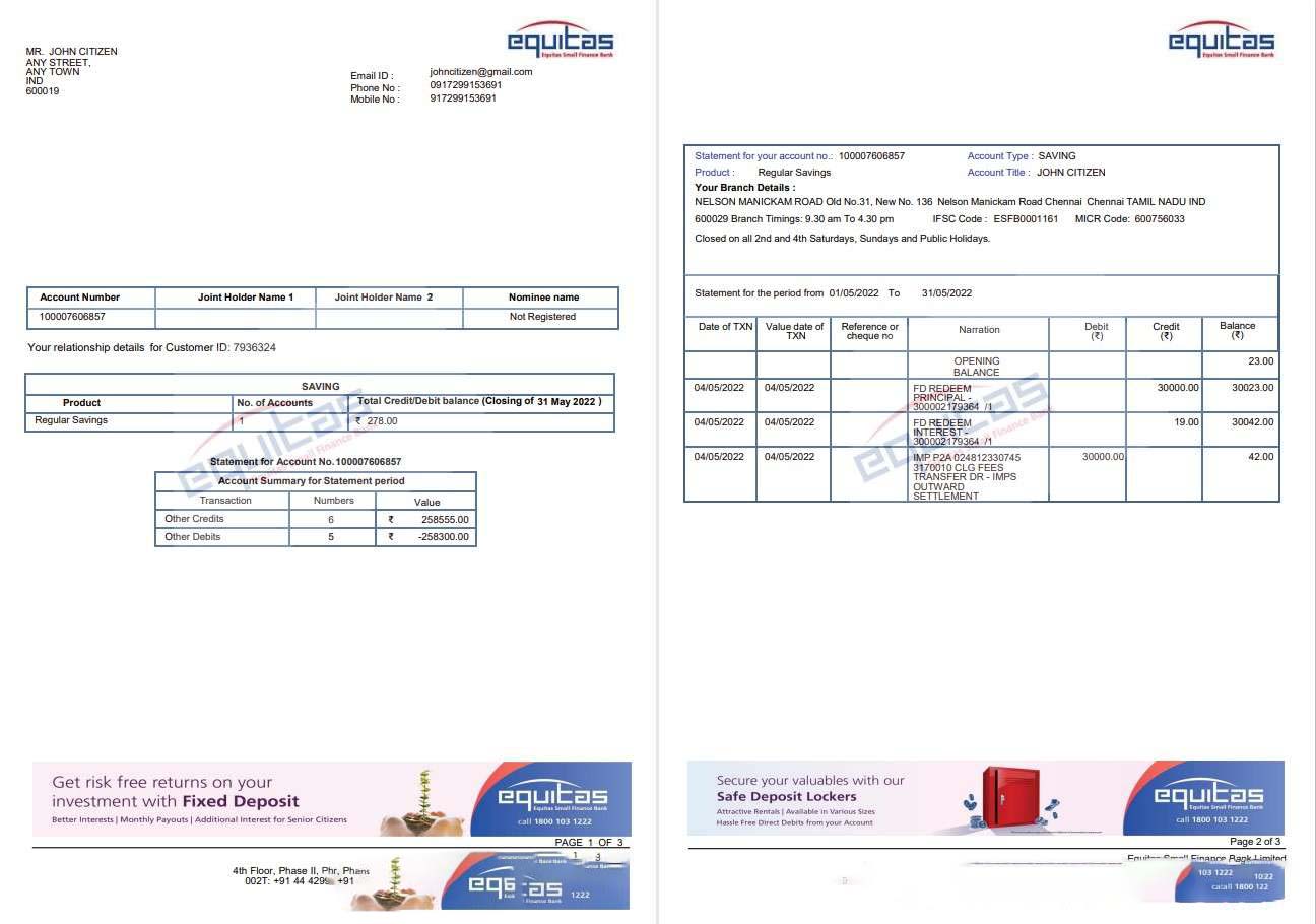 Be the first to review “India Equitas bank statemnet 3 pages download template file”