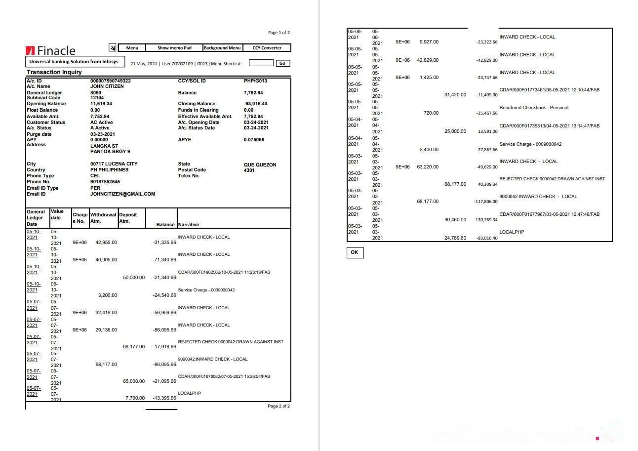 India Finacle bank 2p excel download template file