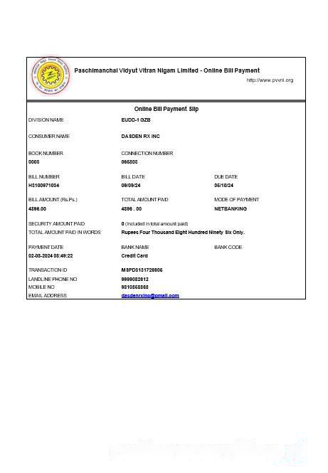 INDIA PVVNL business utility bill Word and PDF template download template file