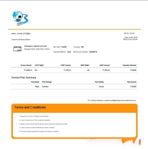 India Waheguru Telecom utility bill template in Word and PDF formats download template file
