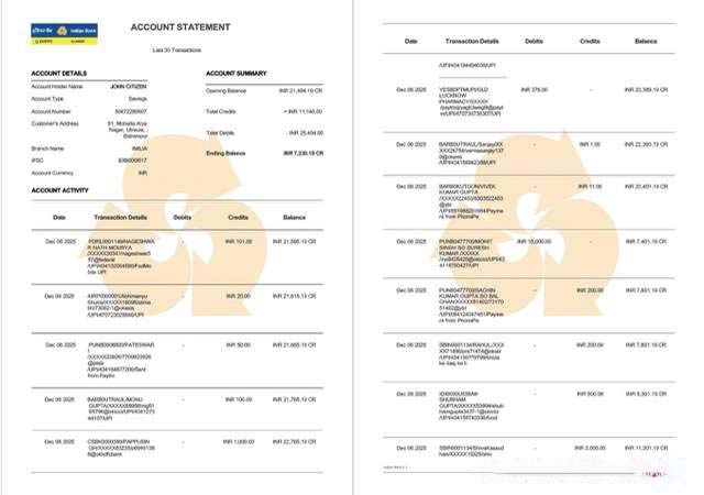 Indian Bank Allahabad account statement Word and PDF template, 2 pages download template file