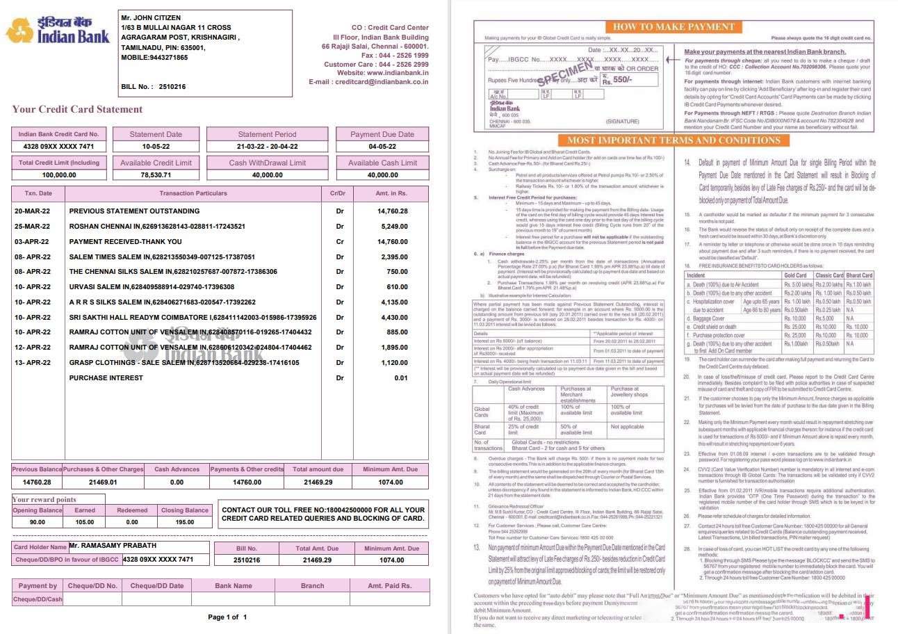 Be the first to review “Indian bank credit card statement 2 pages download template file”