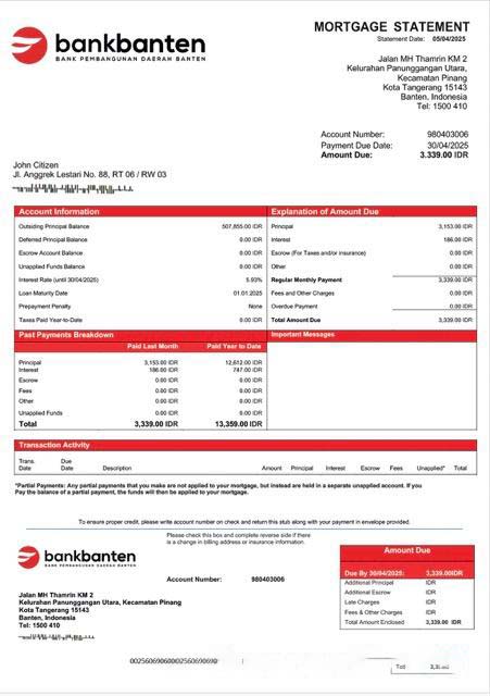 Indonesia Bank Banten mortgage statement Word and PDF template download template file