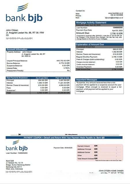 Indonesia Bank BJB mortgage statement Word and PDF template download template file