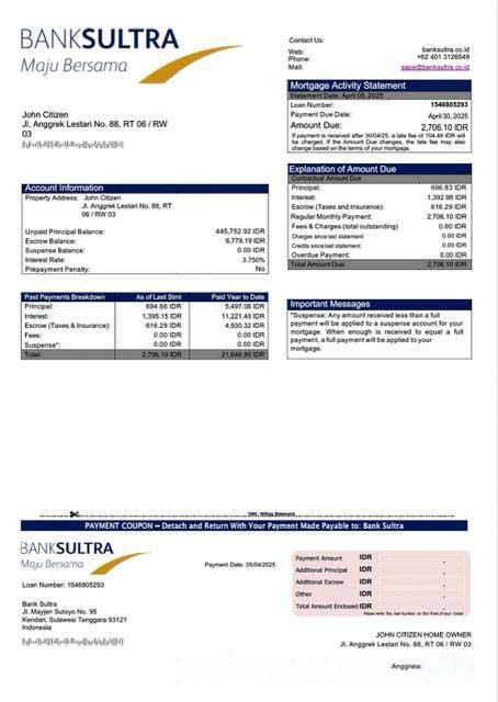 Indonesia Bank Sultra mortgage statement Word and PDF template download template file