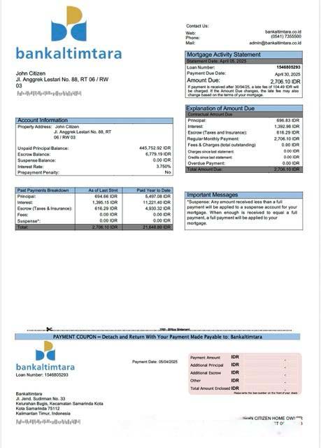 Indonesia Bankaltimtara mortgage statement Word and PDF template download template file