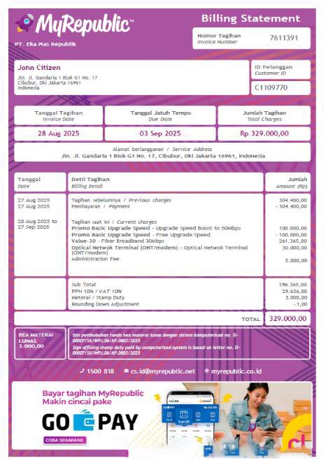 Indonesia My Republic utility bill template in Word and PDF formats download template file