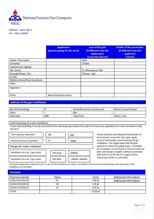 Iran National Iranian Gas Company gas utility bill download template file