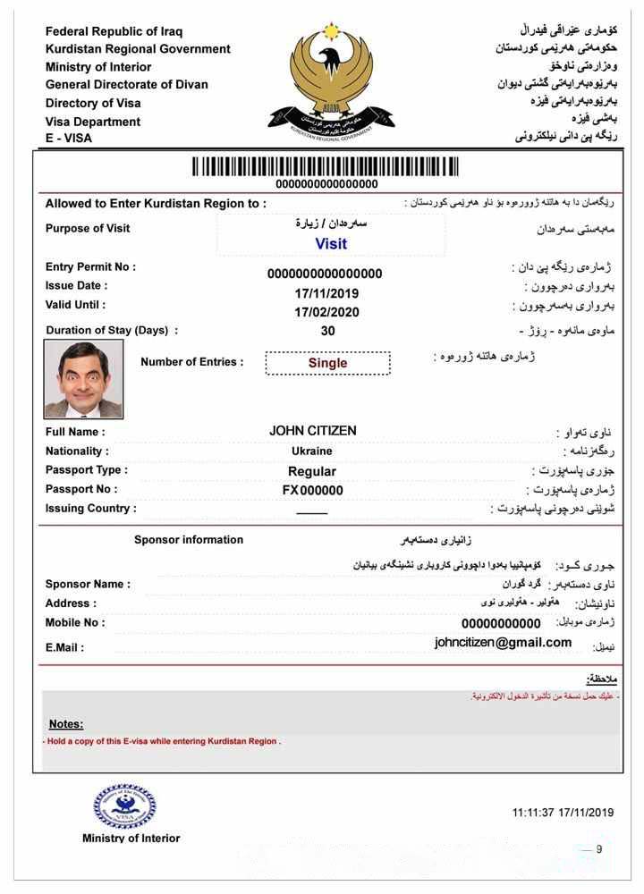 IRAQ e visa download template file