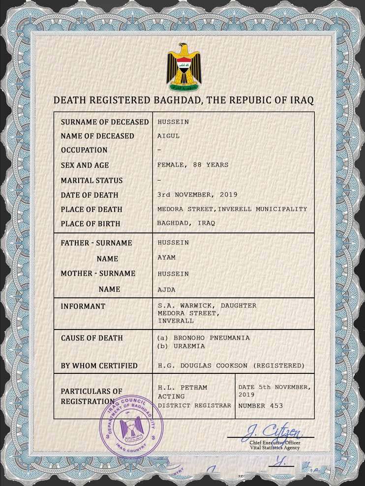 Iraq vital record death certificate PSD template download template file