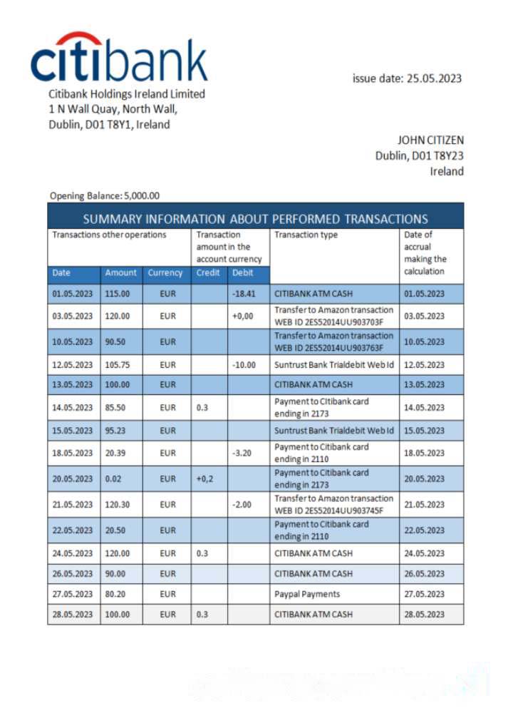 Be the first to review “Ireland Citibank bank statement Word and PDF template download template file”