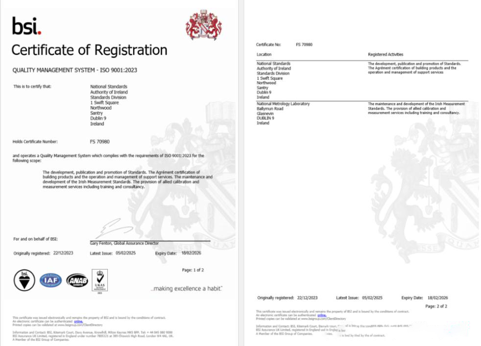 Ireland Dublin BSI certificate of registration Word and PDF template download template file