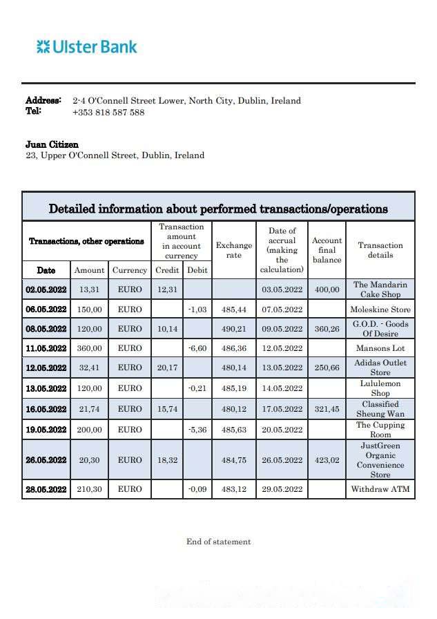 Be the first to review “Ireland Ulster Bank statement download template file”