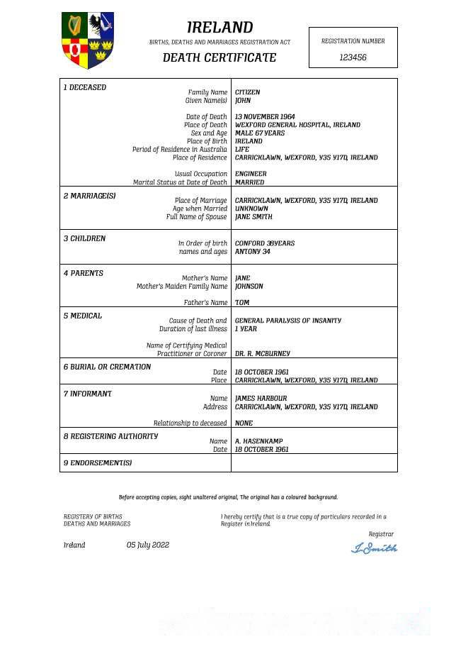 Be the first to review “Ireland vital record death certificate Word and PDF template download template file”