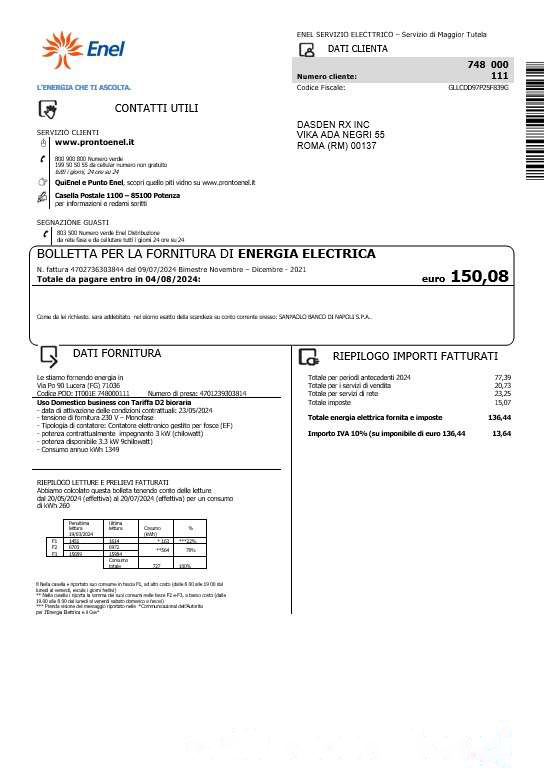 Italy Enel electricity business utility bill template in Word and PDF formats download template file
